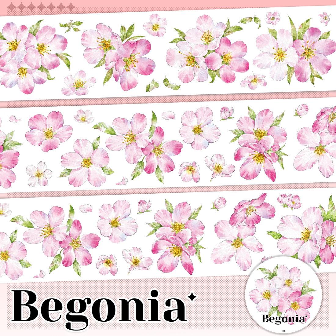 【MOOBOOM】Begonia Flower Vintage Flower Shell Light Foil Pre-cut PET Tape