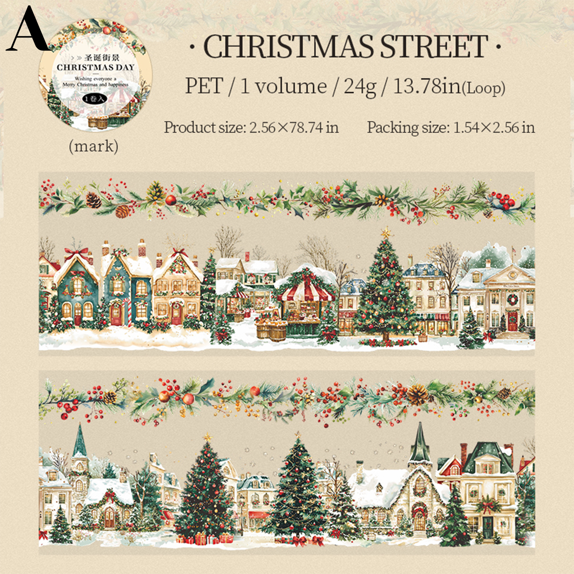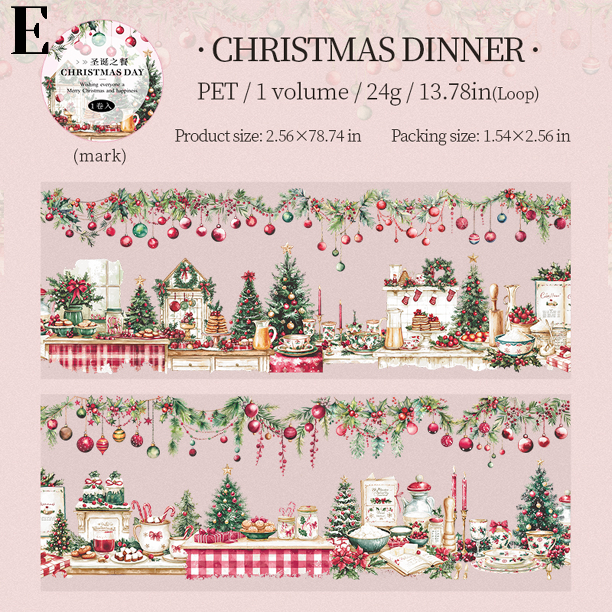Christmas Day PET Tape is perfect for decorating scrapbooking, card making, junk journals, gift packages, and more paper crafts.