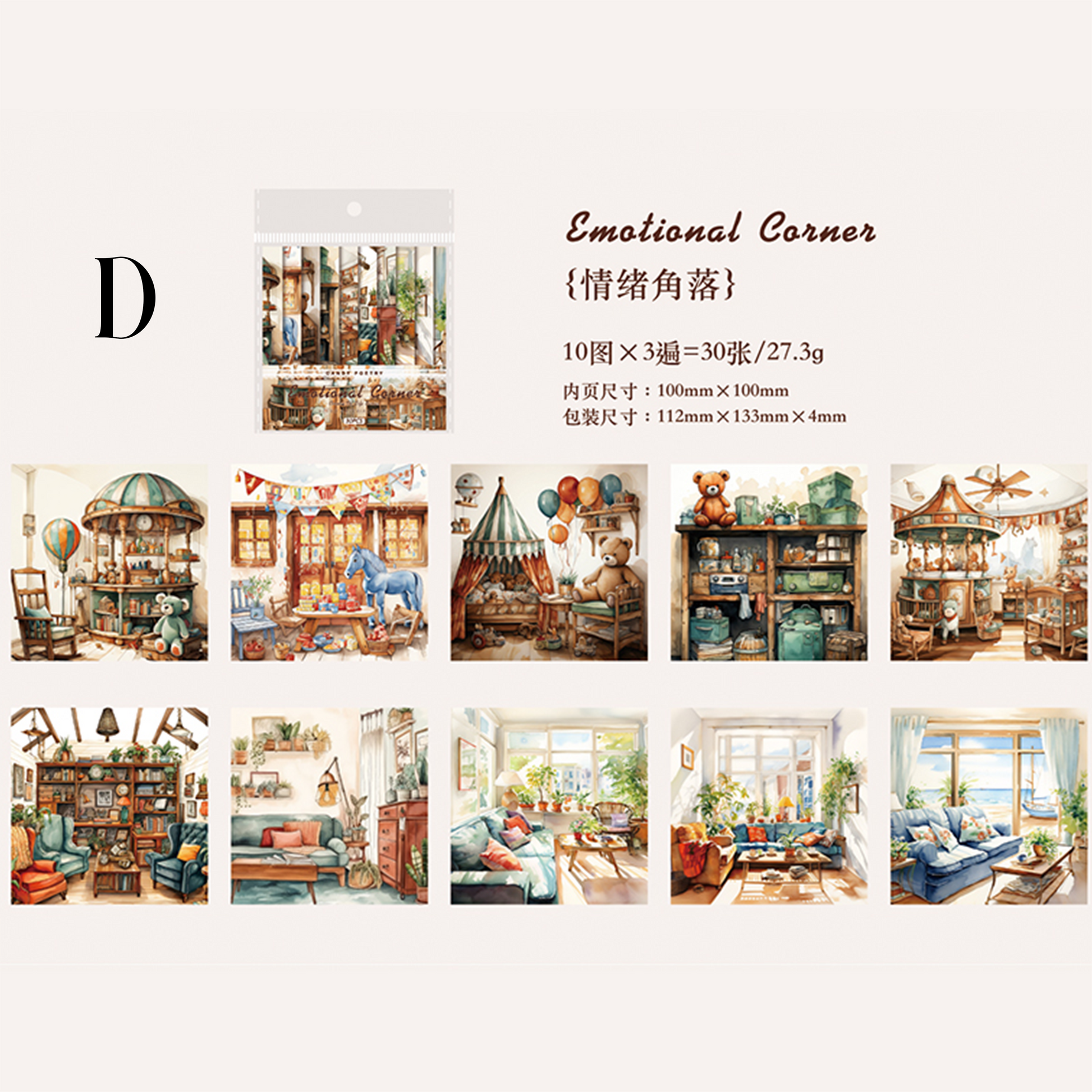 Size: 100mm*100 mm / 10 patterns of each type totaling 30 sheet