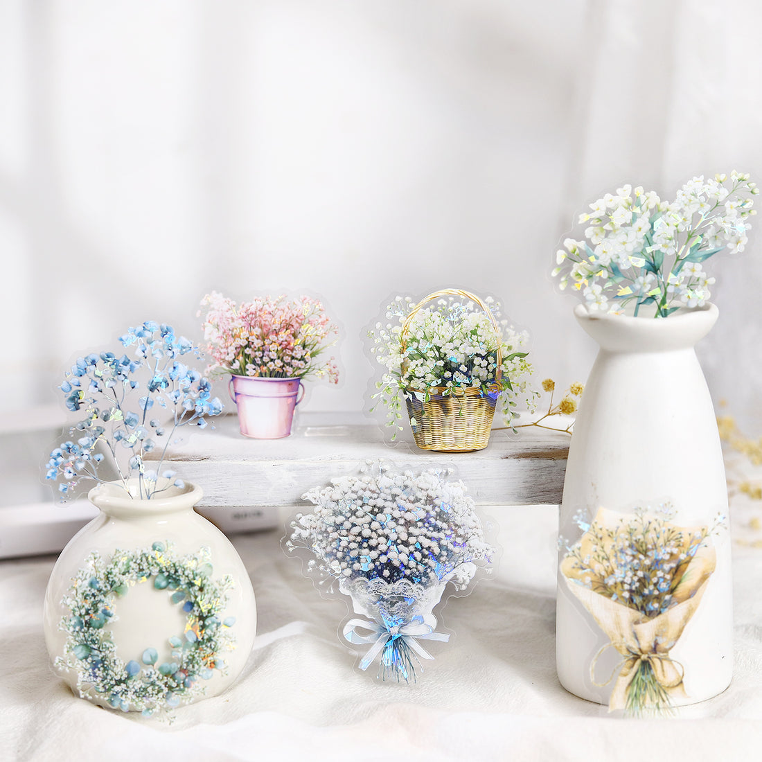 Estas hermosas pegatinas de flores están diseñadas para álbumes de recortes, diarios de arte, fabricación...