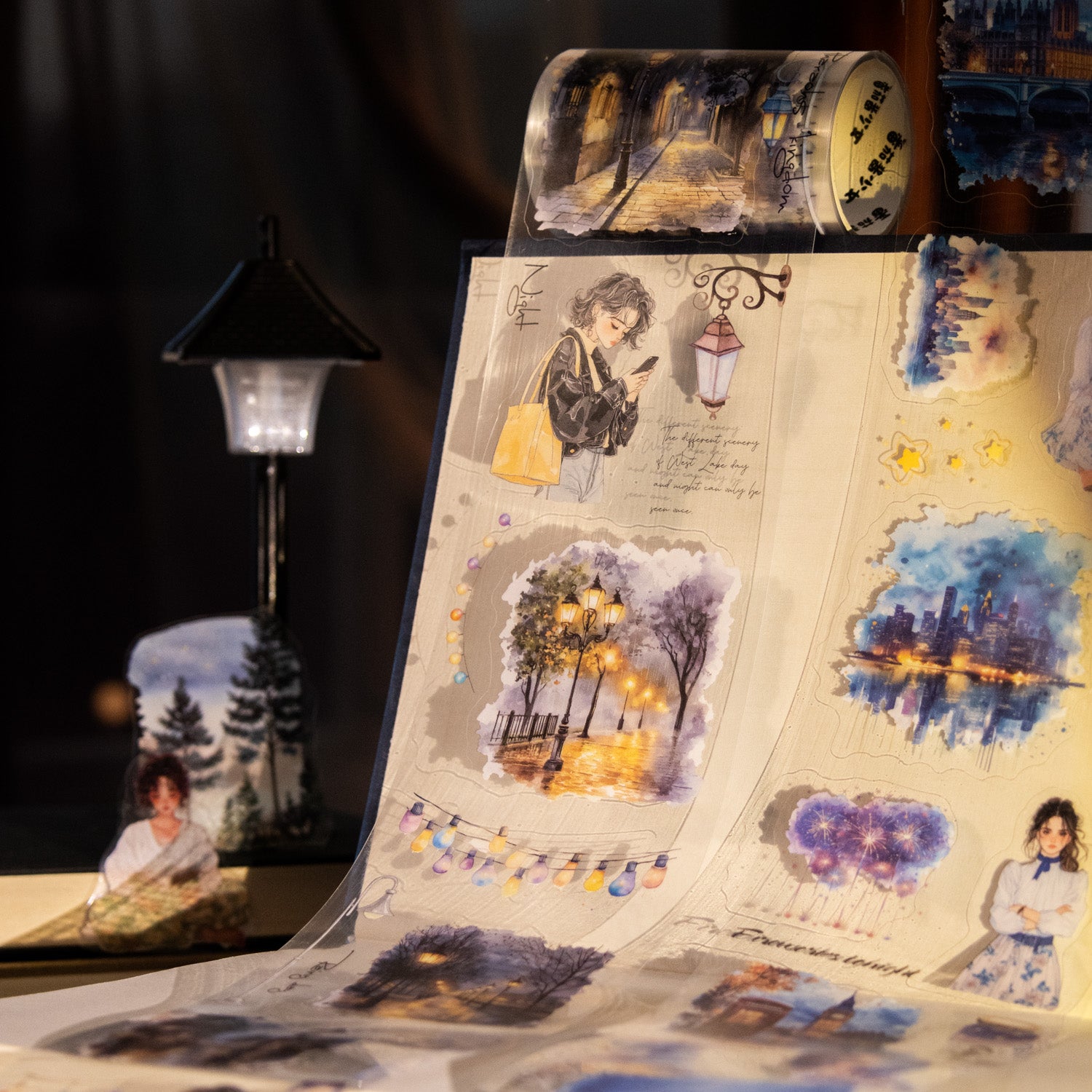 Moonlit Night Curtain Pre-cut PET Tape is perfect for decorating scrapbooking, card making, junk journals, gift packages, and more paper crafts.