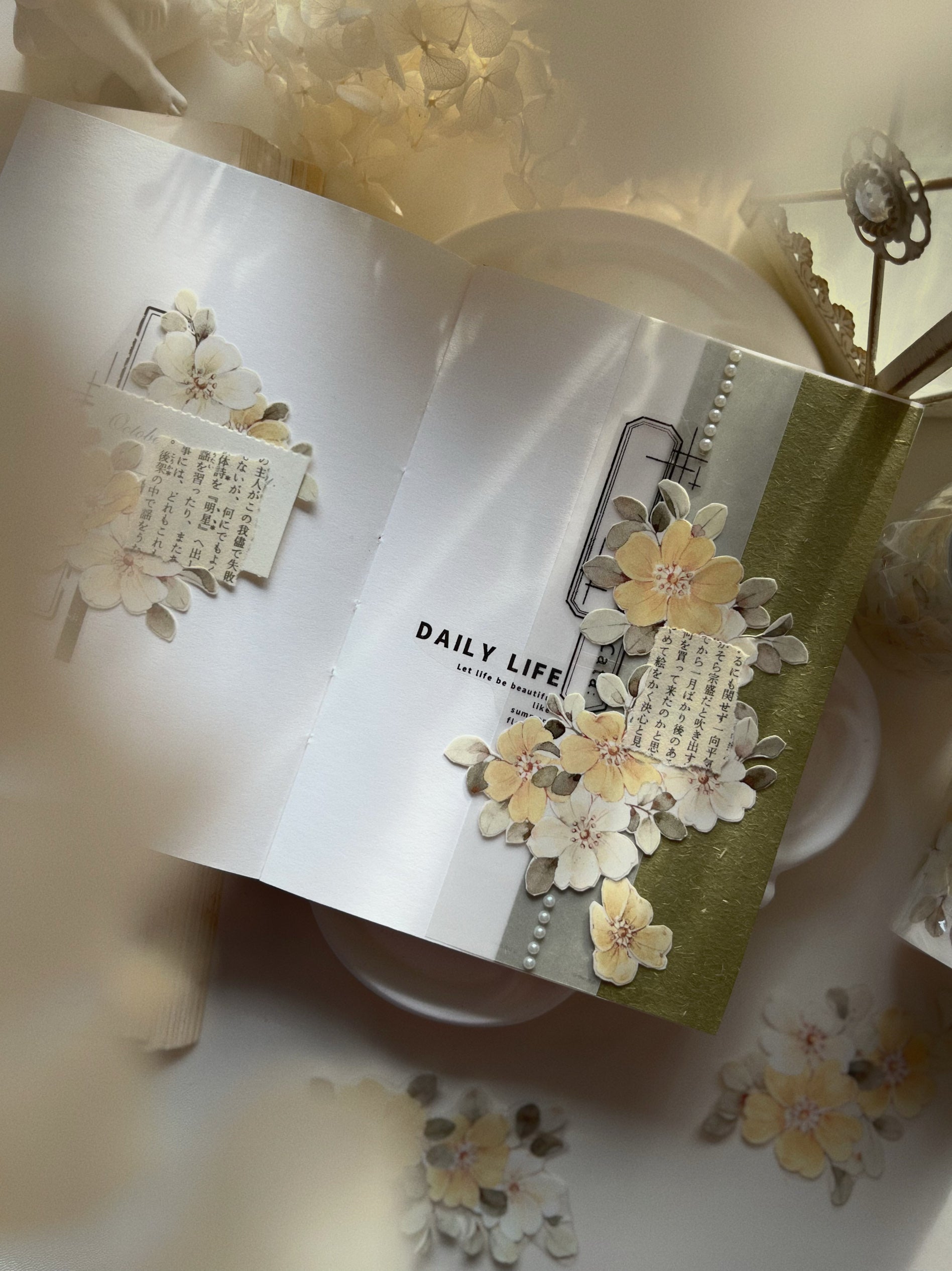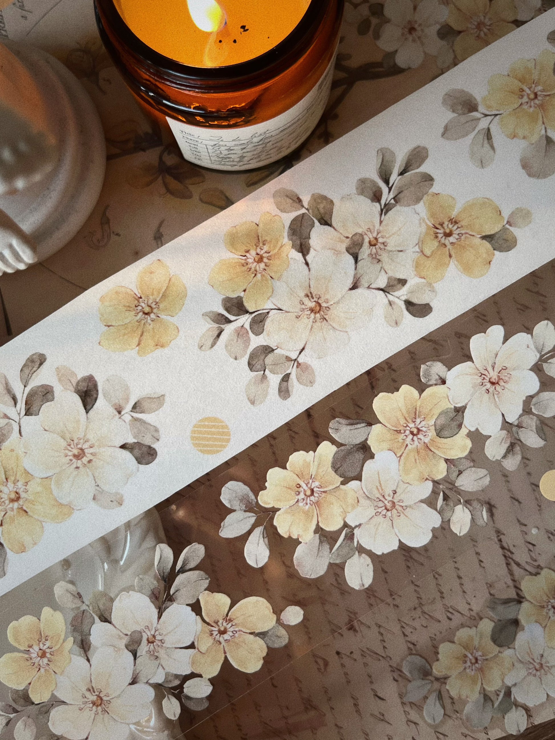 Small Yellow Flower Tape are perfect for scrapbooks, junk journals, cards, gift packages, and more paper crafts.