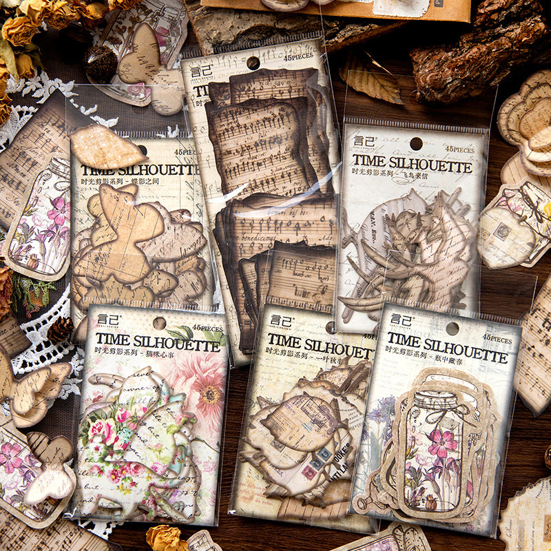 "Time Silhouette " Series Vintage Scrapbook Paper