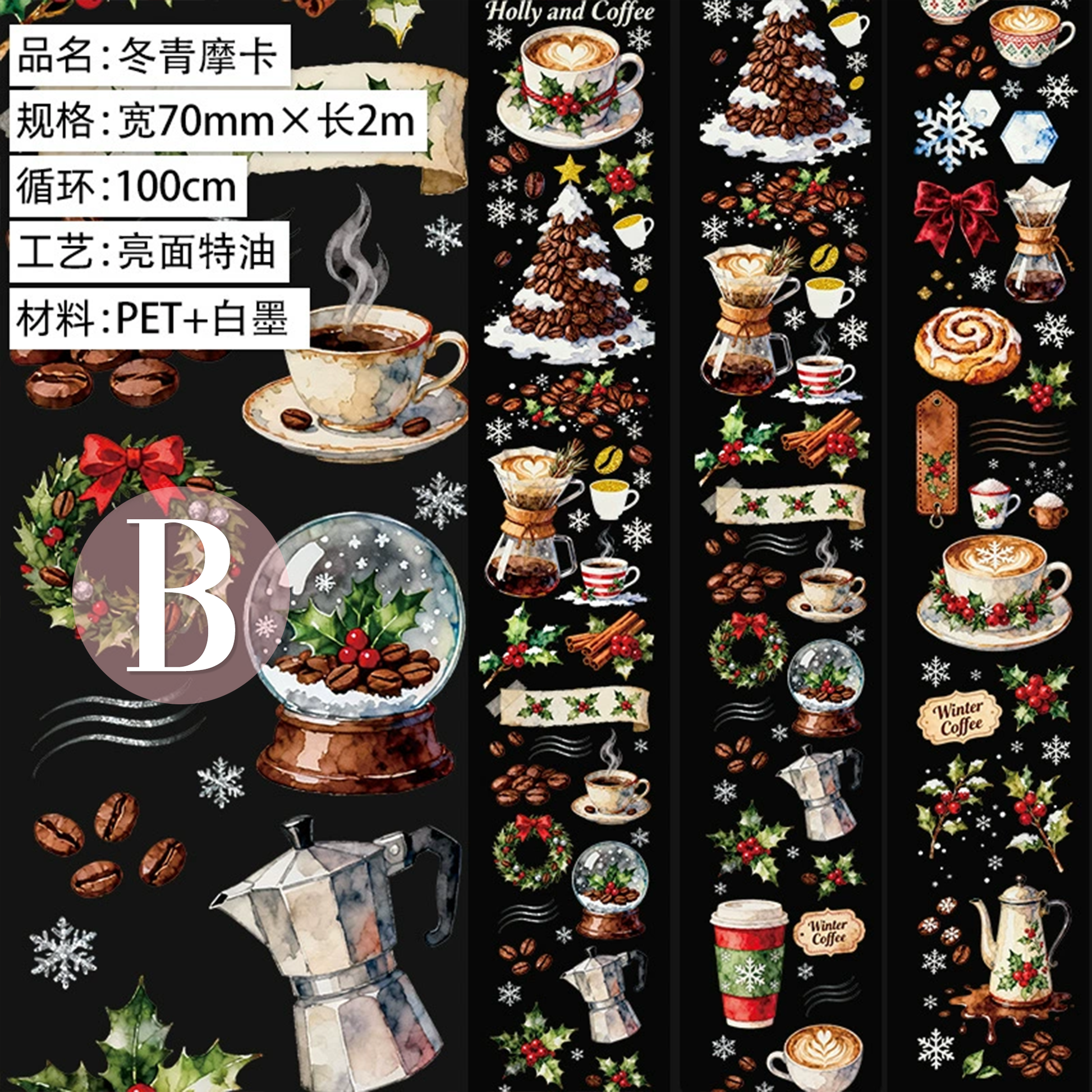 Wonderful Christmas PET Tape is perfect for decorating scrapbooking, card making, junk journals, gift packages, and more paper crafts.