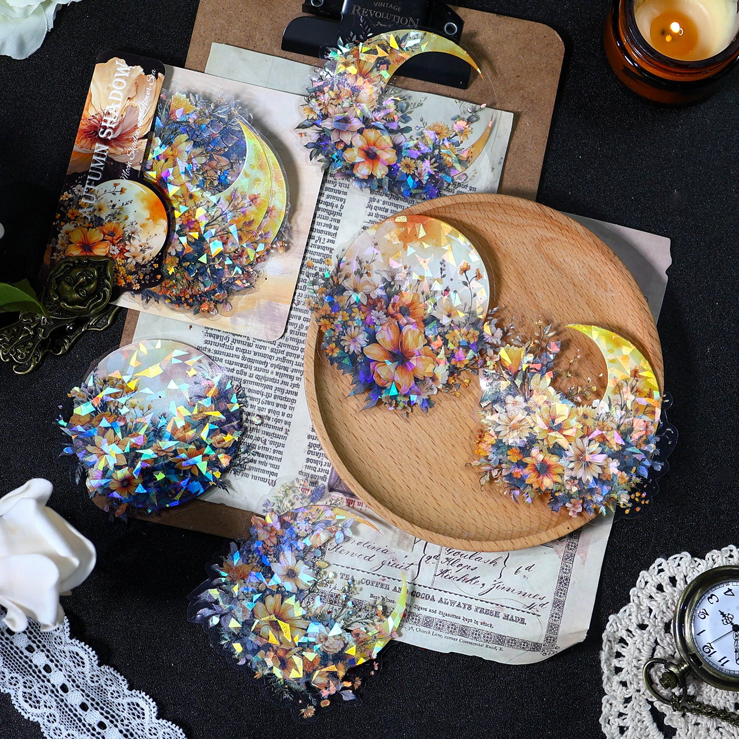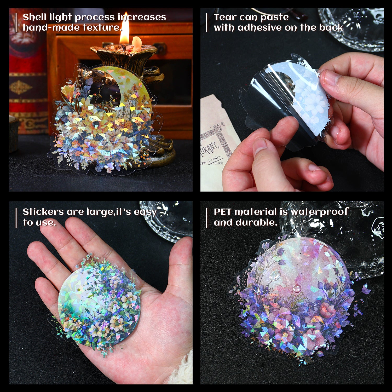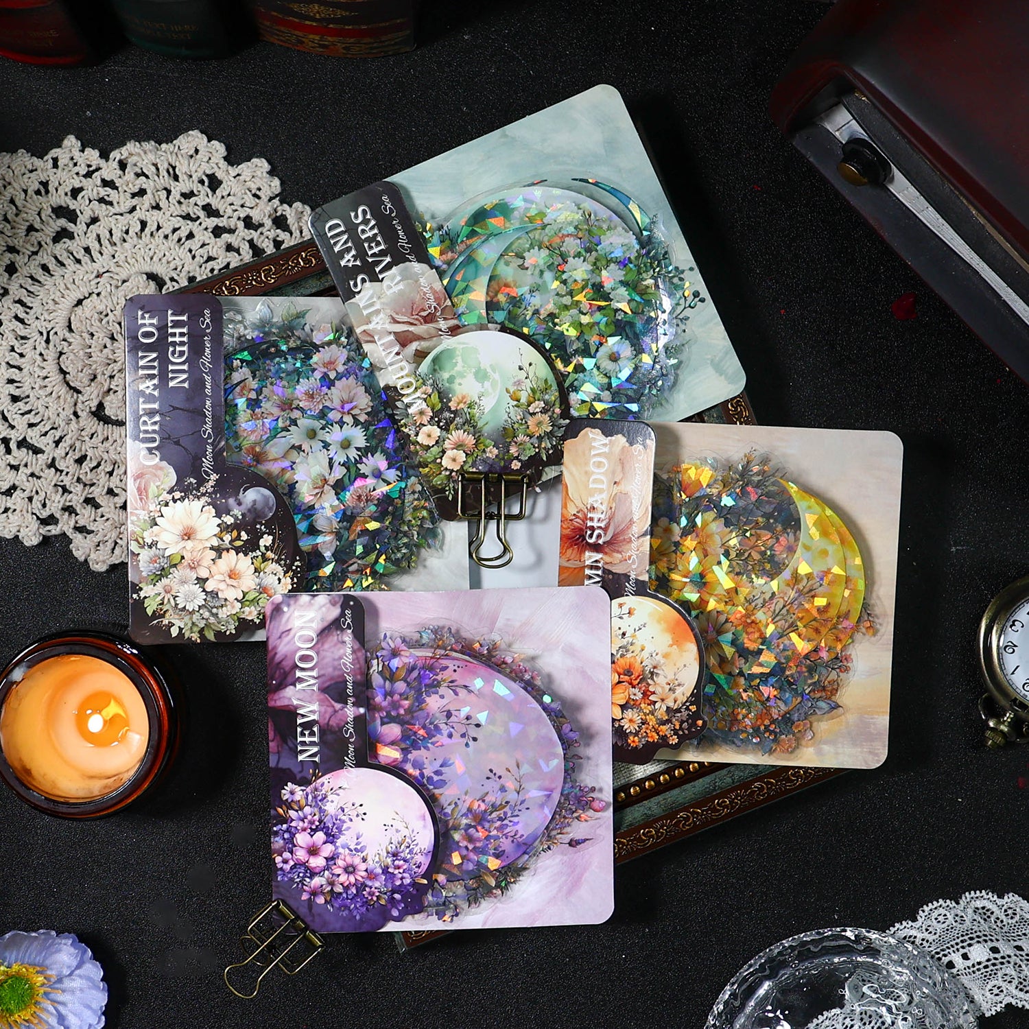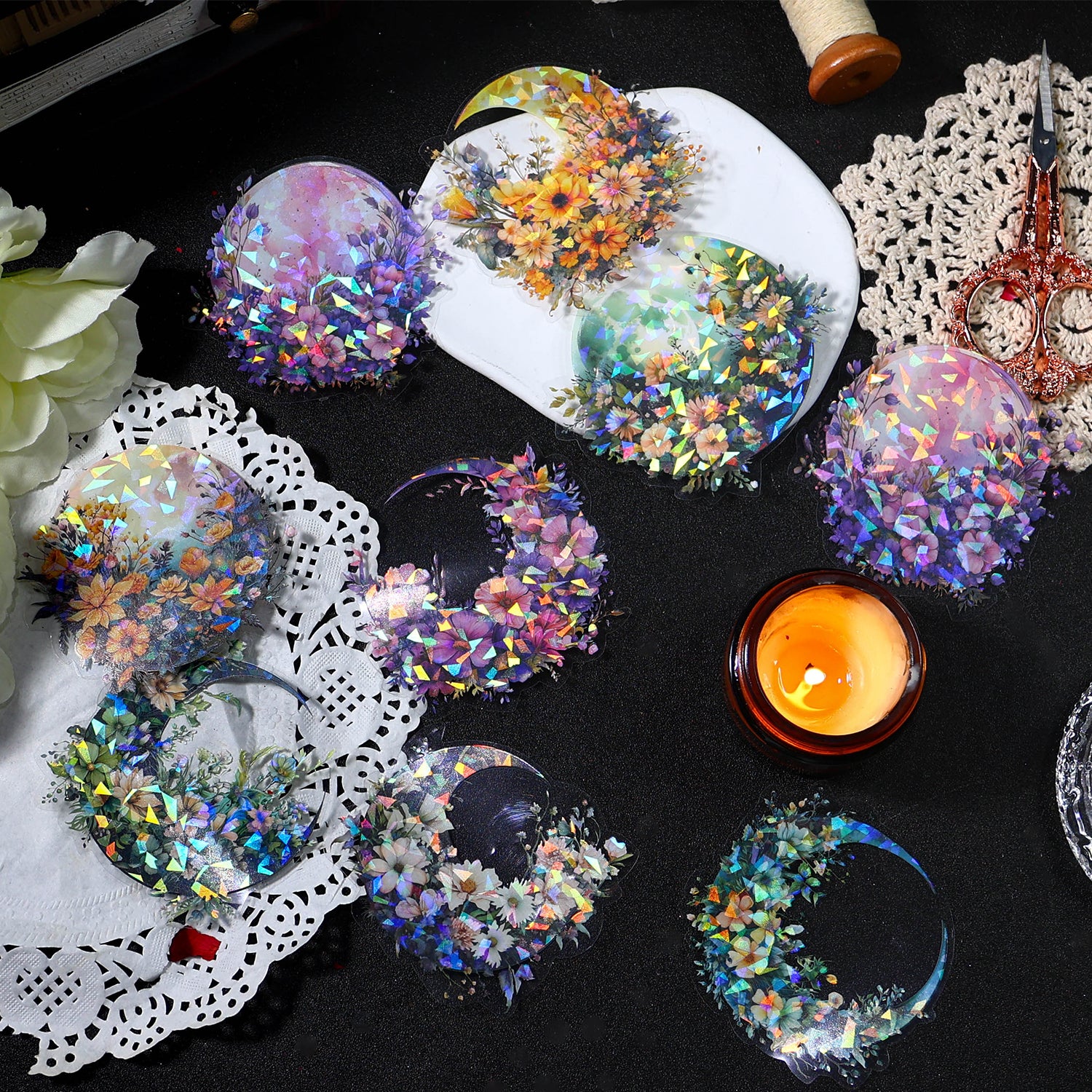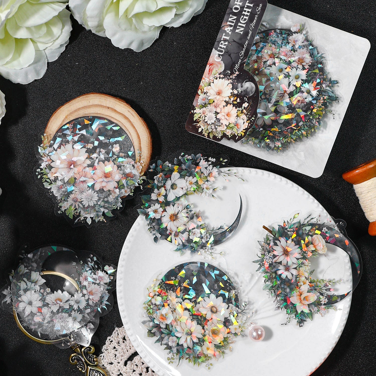 Moon and Flowers PET Sticker are designed for scrapbooking, card making, art journals, gift wrapping and more paper crafts and DIY work.
