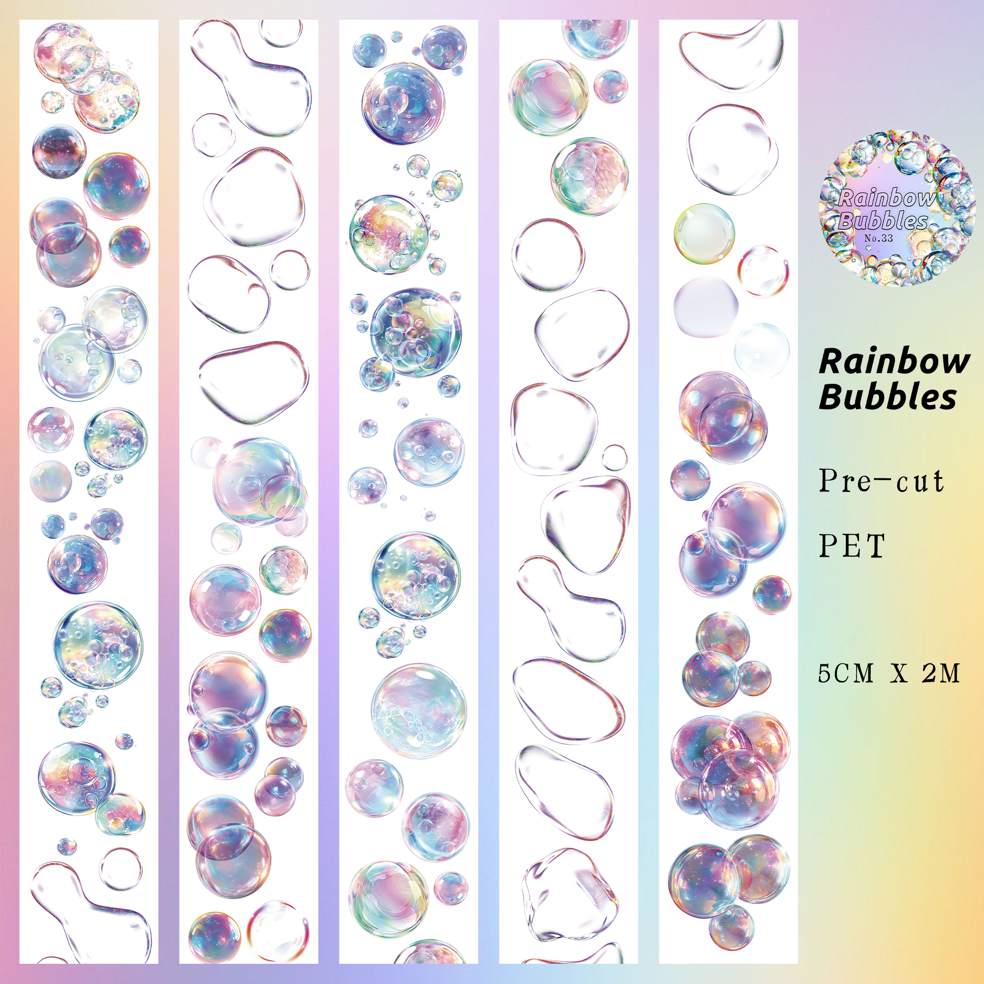 Rainbow Bubbles Rainbow Coating Pre-cut PET Tape | No.33 | MOOBOOM Design