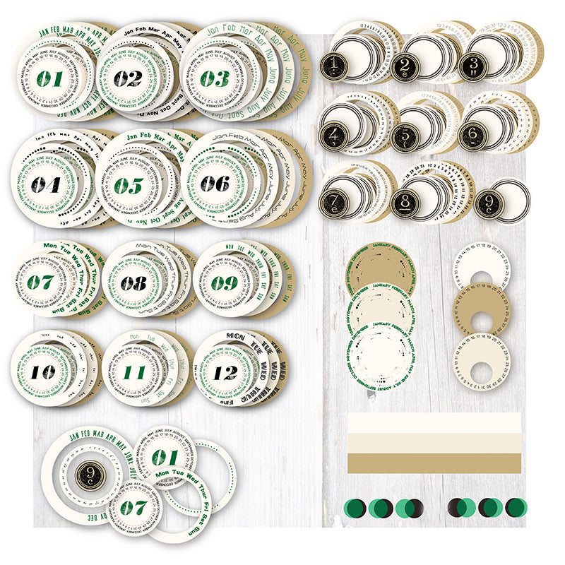 These round scrapbook paper comes with day, week, and month around. They are perfect for scrapbook, art journal, card, gift package and more paper crafts.