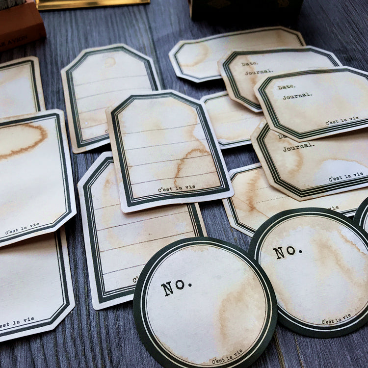 These vintage style coffee dyed label papers are perfect for scrapbooking, junk journal, card making and more paper crafts.